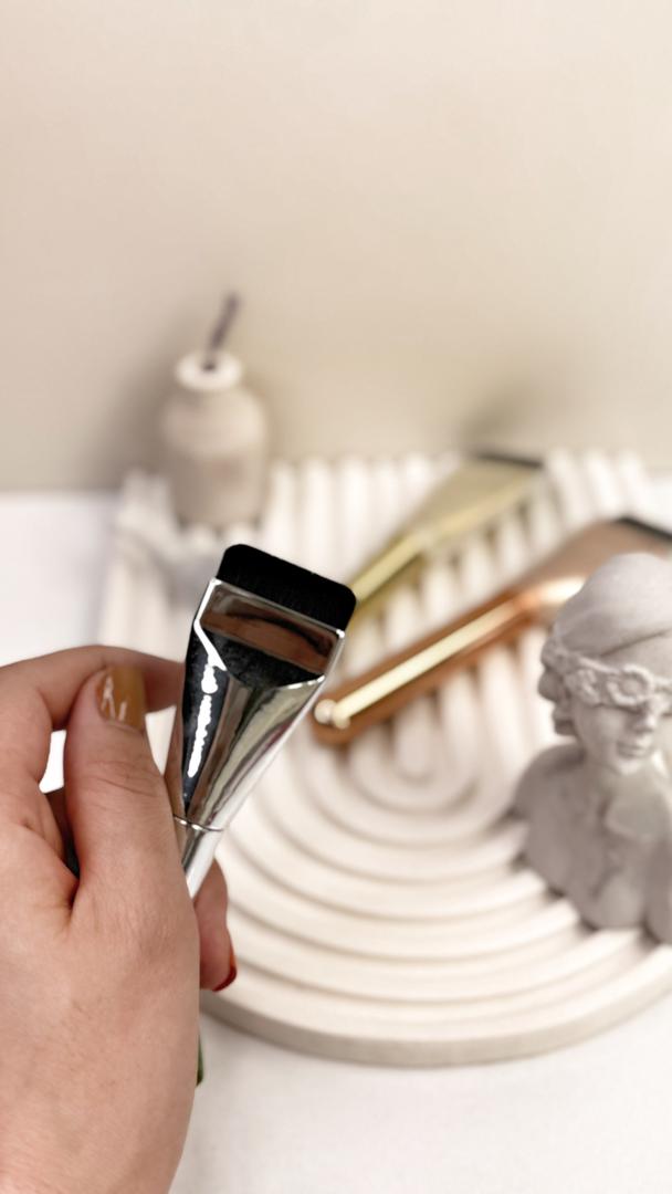 یه براش کره‌ای تخت که آرایشتو صاف، طبیعی و بی‌نقص نشون می‌ده و حس راحتی طولانی روی پوست میده